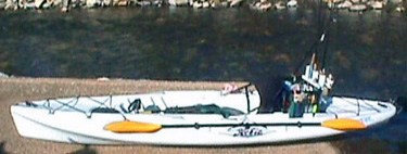 I guess it would be appropriate to discuss another unique feature in the cockpit. There is a sizable hole in the footwell. This accommodates the pedal system. This is one of those things that seems so simple you scratch your head and wonder why you did not think of it. As simple as it is the pedal driven flippers work extremely well. Without effort the boat can be pedaled at 3 to 4 mph. This pace can be maintained for long periods of time. I have navigated the boat into a stiff breeze on open water and maintained course and speed 3.5 mph covering the 1.3 miles in about 40 minutes(this was on a N. Georgia lake and my feet were numb due to frigid temp).